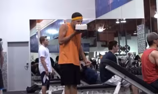 Todo esto ocurre ante la atónita mirada de sus compañeros de gimnasio que le observan con incredulidad (y algunos con envidia) mientras se atiborra a comida basura.