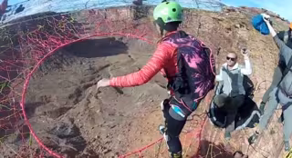 Una especie de tela de araña de nylon suspendida a 150 metros del suelo en mitad de los acantilados del Gran Cañón del Colorado es la última aventura de estos adictos a la adrenalina extrema. La red está hecha a mano y sirve como plataforma para realizar su deporte favorito: el salto base con paracaídas.
