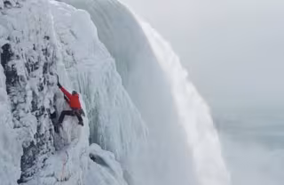El frío del invierno y los fuertes temporales que azotan la zona hicieron posible que el agua se convirtiera en firme hielo y, por lo tanto, en un lugar ideal para que los expertos en escalada sobre hielo, como Will Gadd, desafíen el miedo y el peligro.