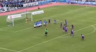 Una barrera en línea recta, por parte de los anfitriones, se formaba con 8 de los 11 jugadores para crear un muro impenetrable, pero la estrategia del equipo visitante les descolocó por completo. De repente se empiezan a poner en fila india 6 jugadores del Kyoto dispuestos a lanzar el tiro. El primero se va, el segundo, tercero y cuarto lo hacen también, deprisa, y es el quinto el que ejecuta el lanzamiento y cuela el balón en las redes.