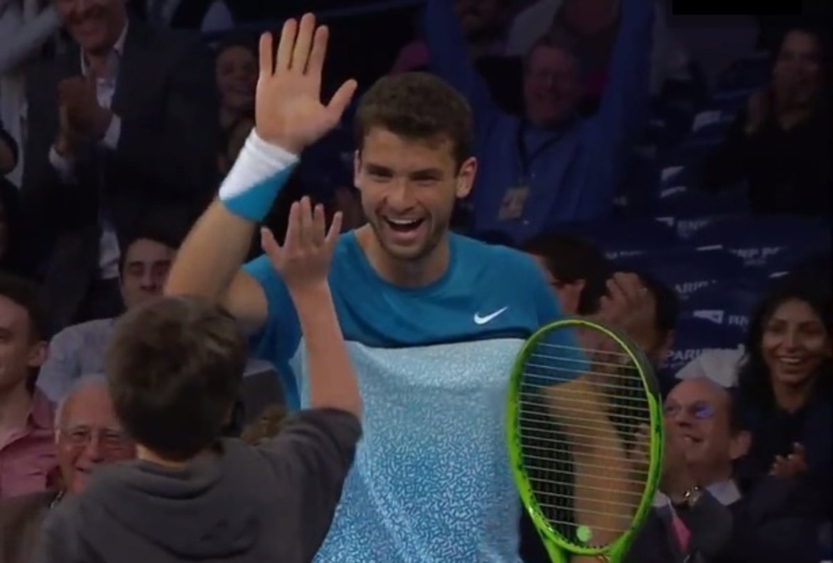 Un joven valiente que fue invitado al terreno de juego, cuando aún no había terminado el tercer set del partido, para retar a Federer a un duelo de raquetas. El pequeño recibió la suya de Dimitrov, y con ella su suerte, porque no hay más que ver las imágenes de este curioso encuentro para entender de lo que hablamos.