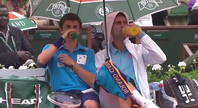 El lunes fue un buen día para Novak Djokovic mientras disputaba un partido en el Open de Francia contra Joao Sousa. La tranquilidad que supone la ventaja de adelantarse a su rival en el marcador, hizo que ni la lluvia empañase su buen humor.