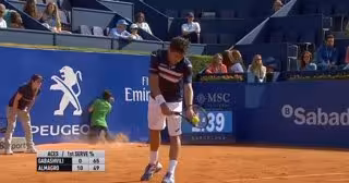 Un recogepelotas fue el protagonista inesperado de la primera jornada del Torneo del Conde de Godó que se está disputando desde el lunes de esta semana. El motivo: darse un tortazo contra la pared de lona que separa la pista de las gradas de los espectadores. El chico fue a hacer su trabajo, recoger una bola para que no quedara en medio de la pista y poder dársela después a uno de los jugadores con rapidez para no parar el juego.