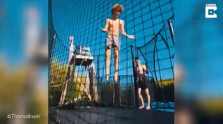 Este adolescente demuestra tener una increíble habilidad para realizar volteretas y todo tipo de trucos en la cama elástica.
