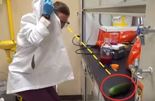 Un reciente vídeo parodia subido en el canal de YouTube de Aubrey Kelly, investigadora en la Universidad de Cornell, pone de manifiesto que los gatos no son los únicos que se sobresaltan por la aparición inesperada de los pepinos, los científicos que trabajan con ella son capaces de hacer hasta parkour con tal de no tenerlos cerca.
