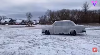 Con el coche cubierto de hielo, Dima y sus amigos tuvieron la idea de ver cómo sería conducir el vehículo en ese estado.