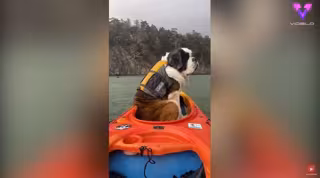 A Brody, el San Bernardo, le gusta sentarse en el kayak y ver el mundo pasar, mientras David rema por las serenas aguas. Mientras se lanzan al agua, Brody se equilibra perfectamente en el kayak y lleva con orgullo su adorable chaleco salvavidas para perros, por si acaso decide lanzarse al agua para nadar.
