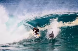 ¿Cuántas probabilidades hay en la vida de poder surfear una ola junto a un delfín? Probablemente pocas, pero muy satisfactorias. Tanto como para que dicho acontecimiento grabado en vídeo se haya vuelto viral en Internet.