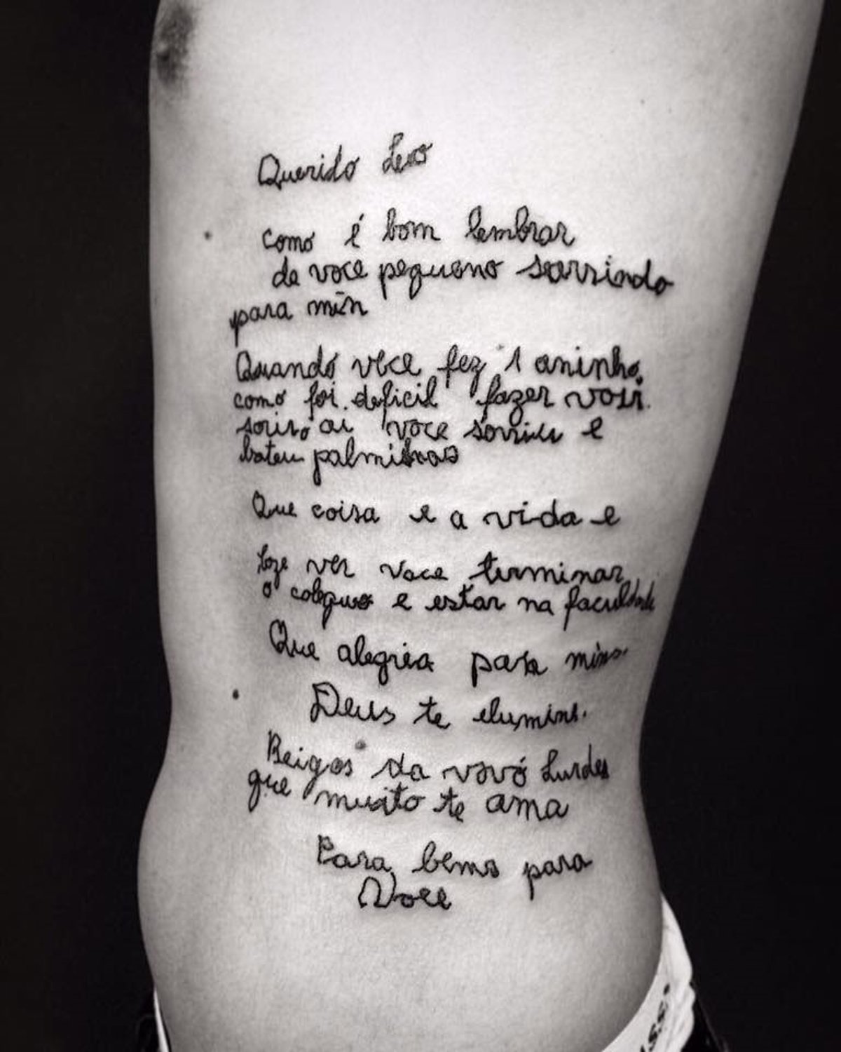 En el texto que el joven publicó en Facebook habló largo y tendido sobre cómo había afectado la enfermedad de su abuela a la familia y a él especialmente. Junto al texto, una fotografía de la carta de la abuela que Martins decidió tatuarse para rendirle un homenaje que jamás olvidará.
