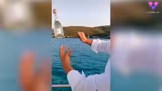 Cogiendo un cuchillo, Eugen intentó abrir la botella, sin embargo, todo salió volando de sus manos, dirigiéndose directamente al mar. El divertido incidente ha sido todo un éxito en la red, ya que el vídeo ha recibido más de 25 millones de visitas.