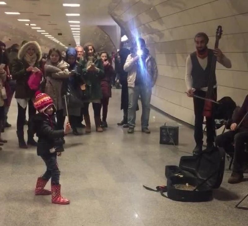Una banda de músicos callejeros estaban tocando en un pasillo del metro de Estambul, en Turquía, cuando una niña del público decidió unirse a ellos en calidad de directora de orquesta (¡Nada más y nada menos!). El adorable momento fue registrado en vídeo y compartido en YouTube donde se ha vuelto viral.
