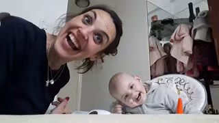 El motivo de la charla: una comida que Angelina, por mucho que insiste su madre, no quiere comer. Pero no se queda ahí, la pequeña se quiere hacer entender imitando los aspavientos y los movimientos de su madre para dejarle claro que ella con pan, yogurt y plátano es más que feliz. Y lo consigue con muchas carcajadas de por medio.