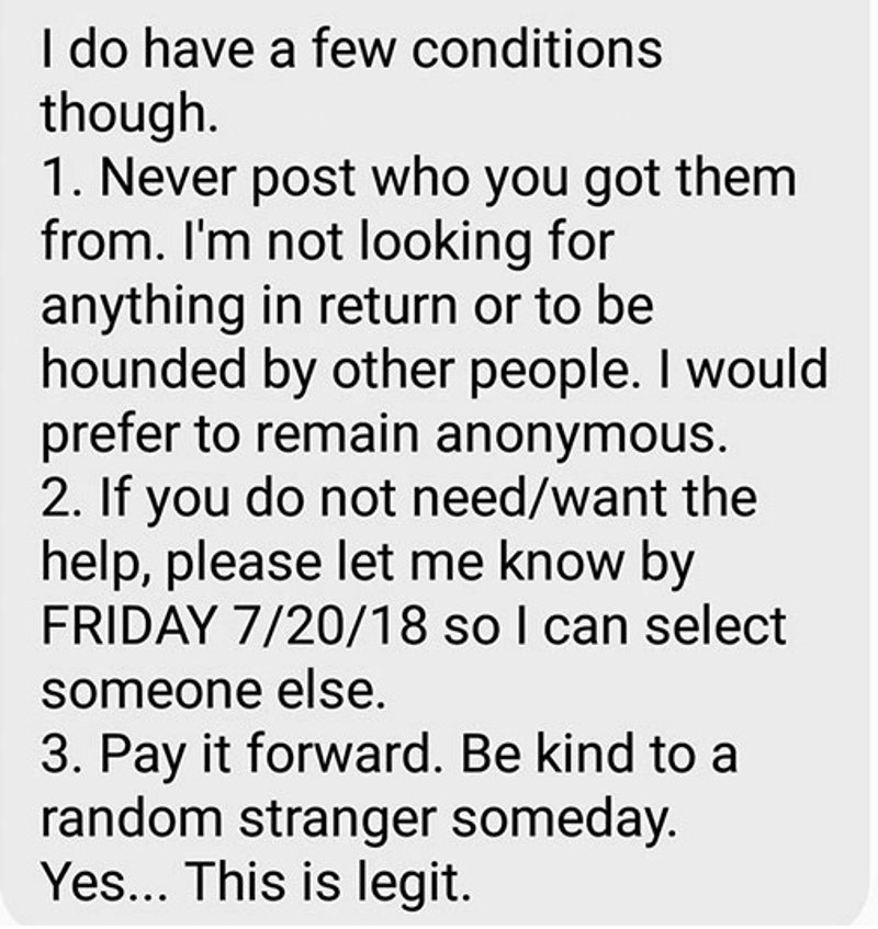 "No tengo ni idea de por qué recibí un regalo así, pero me cambió la vida. Sin ello no habría tenido una educación porque éramos bastante pobres. Me gradué en una licenciatura de ciencias sin deudas. Llevo una buena vida y esta es mi forma de devolver el favor".