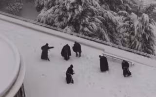 Las fuertes nevadas caídas en Jerusalén estos días han dejado un manto blanco sobre la capital de Israel, que muchos aprovecharon para lanzarse bolas de nieve. Seis monjes franciscanos fueron capturados en vídeo iniciando una de esas batallas y disfrutando como niños en la azotea de un edificio.