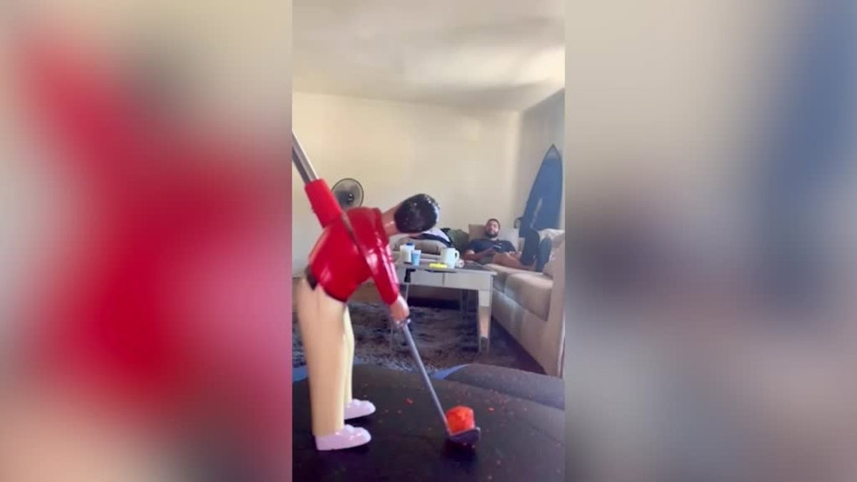 Este dúo ha dominado la habilidad de jugar al golf con bolas de queso en casa. Sus compañeros de casa, Patrick Casey, de 26 años, y Elias Burbick, de 26 años, de Los Ángeles (EE.UU.), han compartido sus impresionantes habilidades en las redes sociales con graciosos vídeos de su destreza con las bolas de queso.
