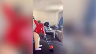 Patrick, que trabaja en ventas de tecnología, graba a su compañero de piso intentando atrapar las bolas de queso en su boca con un juguete de golf que compró en Amazon por 12 euros, fallando constantemente hasta que por fin lo consiguió y quedó grabado.