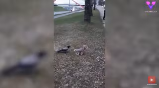 El cuervo se acercó a Antonina antes de retroceder, y entonces le tocó a la perra poner a prueba la valentía del cuervo. La pareja siguió compitiendo entre sí y persiguiéndose.
