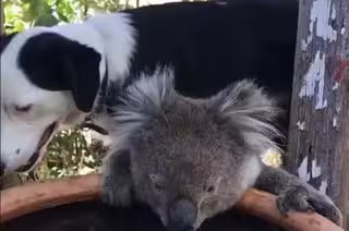 En un gesto que demuestra que la solidaridad no es solo cosa de humanos, Rusty, el perro de una familia de Ashton, en Adelaide Hills, Australia del Sur, comparte agua con un koala sediento en plena ola de calor, de incendios y de sequía que azotan Australia.