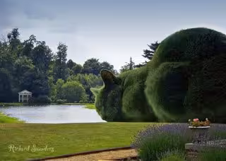 Richard Saunders realiza este proyecto surrealista, denominado 'Hogar del Gato', a través de la técnica de 'Topiary', horticultura práctica de la formación en vivo de plantas perennes por el recorte del follaje y de las ramas de árboles y arbustos con el objetivo de hacer formas geométricas o fantásticas.