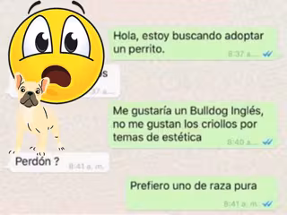 Durante la breve conversación, la persona interesada en adoptar una mascota le pregunta a su interlocutor si tienen algún Bulldog Inglés ya que "por razones estéticas no le gustan los criollos". La petición no cayó nada bien a la persona que estaba al otro lado de la línea telefónica que respondió un sincero: "¿Perdón?".