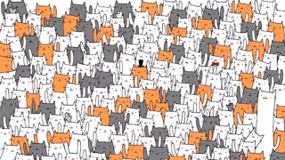 El último de los retos que el artista húngaro ha compartido en Internet consiste en tratar de localizar a un conejo entre un montón de gatos blancos, negros, marrones -y hasta verdes-, muy parecidos entre ellos (ahí está la gracia). ¿Podrás encontrarlo?