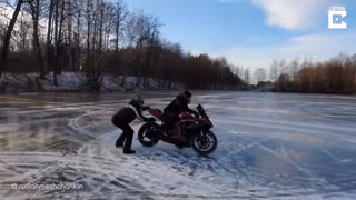 También grabaron los efectos de acelerar demasiado rápido en el hielo, siendo el resultado una rueda de la moto atascada.