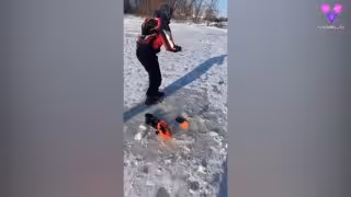 El animal, lejos de huir, volvió a saltar al agua congelada para asombro de los presentes.