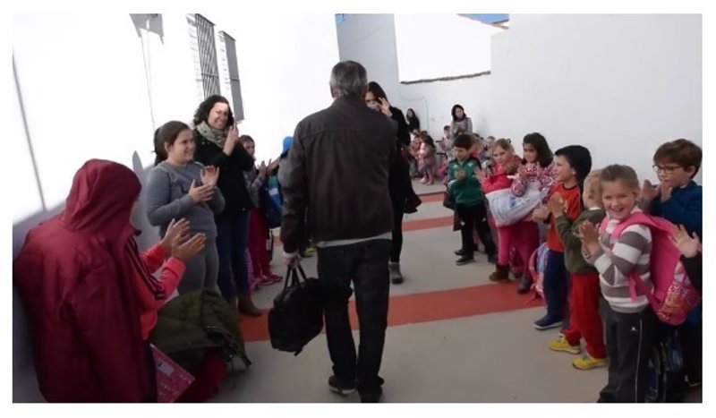 Al vídeo le acompañan unas palabras que hablan de Juan Antonio como un hombre que se ha entregado, que ha dado todo lo que tenía para su comunidad y de cómo en su caso la educación ha trascendido el ámbito escolar y ha llegado al pueblo.