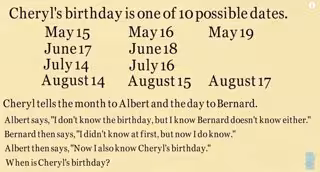 Bromas aparte, Cheryl, Albert, Bernard y los creadores de esta pregunta tendrán que admitir que aún sabiendo las deducciones lógicas que siguieron para dar con la fecha exacta, resulta rebuscado y complicado de entender. Una fecha en concreto, que forma parte de la solución oficial, que el medio 'Mothership' difundió este pasado 13 de abril en un artículo y que dice así:
