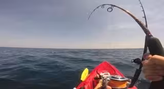 En un momento del vídeo, Fisk sumergió la cámara en el agua para captar bien al tiburón que le arrastraba varios metros por delante del kayak.