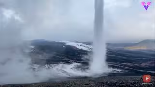 Nadine Galandi filmó cómo los fuertes vientos hacían girar los gases, el vapor y la ceniza volcánica en un enorme torbellino sobre la ladera del volcán Fagradalsfjall, en Islandia.