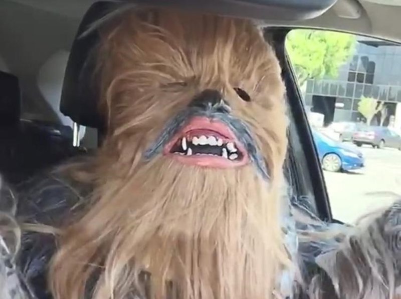 Mientras Candace disfruta de su momento de gloria, Chewbacca ha decidido tomar la revancha y, simulando el vídeo que hizo a la tejana la mujer más popular del momento, pone la cámara en marcha mientras descubre a los espectadores la máscara de Candace Payne que se acaba de comprar.