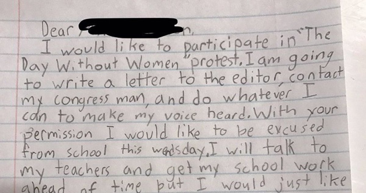 Laura Moreschi, la madre de la niña, compartió en Twitter la carta que su hija había escrito al director del colegio para comunicarle su deseo de asistir a la protesta organizada para el miércoles 8 de marzo, 'The Day Without Women' ('Un día sin mujeres').
