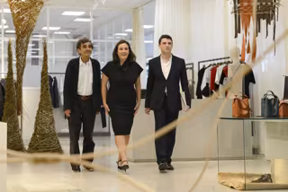 Archivo - El empresario Adolfo Domínguez; la presidenta ejecutiva de Adolfo Domínguez, Adriana Domínguez y el consejero delegado de Adolfo Domínguez, Antonio Puente, llegan a la junta general de accionistas de Adolfo Domínguez, en su sede. - Rosa Veiga - Europa Press - Archivo