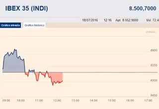 En el mercado de deuda, la prima de riesgo se colocaba en 123,3 puntos básicos, con la rentabilidad del bono a diez años en el 1,211%. Mientras, en el mercado de divisas, el euro se intercambiaba a 1,1038 dólares.