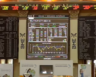 El mayor descenso a medio día era para Iberdrola Renovables (-3,26%), Acciona (-2,87%), Mapfre (-2,63%), Abengoa (-2,23%), Iberdrola (-1,67%), Banco Popular (-1,56%), Banco Sabadell (-1,51%), Telefónica (-1,49%), Banco Santander (-1,21%), Repsol YPF (-0,85%) y BBVA (-0,76%).