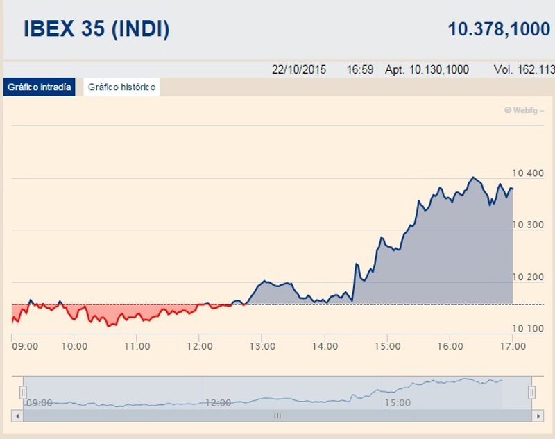 El selectivo madrileño se impulsaba hasta rozar la cota de los 10.400 puntos y se situaba a la cabeza de las ganancias extendidas entre las principales plazas de Europa tras la reunión de tipos del BCE.