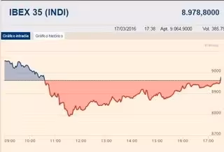 El Ibex 35 ha cerrado la sesión de este jueves con un leve avance del 0,18%, lo que ha llevado al selectivo a quedarse a las puertas de los 9.000 enteros (8.978,8) lastrado por las caídas de la banca.