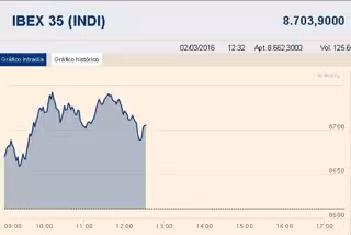 El Ibex 35 ampliaba las ganancias a media sesión por encima del 1% y lograba reconquistar los 8.700 puntos, gracias al impulso de la gran banca y Telefónica, que sumaban más de un 2%. Mientras, la prima de riesgo española subía ligeramente por encima de los 150 puntos básicos.