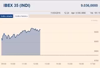 El Ibex 35 ampliaba sus ganancias en la media sesión de este viernes y repuntaba un 3,07%, lo que permitía al selectivo mantenerse por encima de la cota psicológica de los 9.000 puntos (9.035,8) con la banca protagonizando los avances, entre los que destacaba el de Popular (+10,2%).