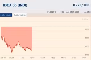 El Ibex 35 ampliaba las pérdidas a media sesión hasta el 1,5%, con lo que se encaminaba a frenar la racha alcista de dos sesiones consecutivas. El selectivo ponía así en riesgo los 8.700 puntos, con los bancos como principal lastre.