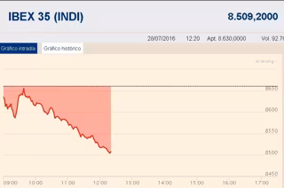El Ibex 35 ampliaba las pérdidas al 1,8% a media sesión y ponía en riesgo la cota de los 8.500 puntos, con sólo seis valores en positivo. Telefónica se convertía en el principal lastre, al desplomarse un 5,6% tras presentar los resultados correspondientes a la primera mitad del año, cuando ganó un 42% menos.