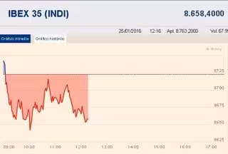El Ibex 35 ampliaba las pérdidas a media sesión y se dejaba un 0,76%, por debajo de los 8.700 puntos. El selectivo truncaba su inicio en positivo ante la nueva caída en el precio del petróleo.