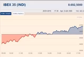 El Ibex 35 ha repuntado un 1,46% al cierre de la sesión de este martes y se ha quedado a un paso de los 8.700 enteros (8.692,5) gracias al repunte de Repsol y de la banca, lo que le ha permitido liderar los avances en Europa.