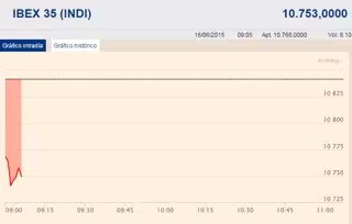 El Ibex 35 ha comenzado este martes la sesión con una caída del 1,1%, lo que le llevaba a cotizar en los 10.722,3 enteros a las 9.01 horas, al tiempo que la prima de riesgo repuntaba hasta los 166,70 puntos básicos, con el interés del bono español en el 2,42%.