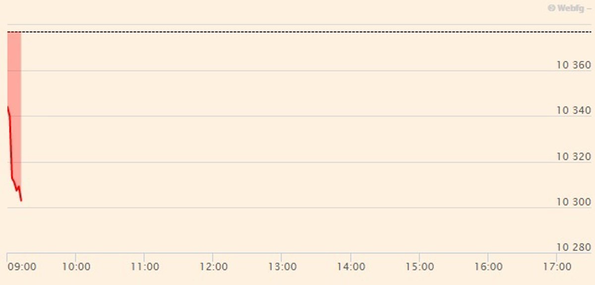 El Ibex 35 abrió este jueves la sesión con una caída del 0,28%, que le llevaba a situarse en los 10.349,5 puntos a las 9.01 horas, con la mayor parte de los valores en terreno negativo, entre ellos IAG y Repsol.