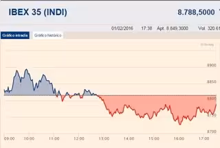El Ibex 35 ha comenzado el mes de febrero con una caída del 0,31%, lo que ha llevado al selectivo a situarse por debajo de los 8.800 enteros (8.788,5) pese al empuje de IAG y Bankia.