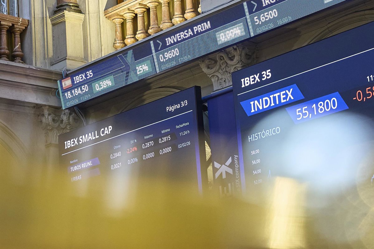 Paneles informativos en el Palacio de la Bolsa de Madrid, a 3 de febrero de 2026, en Madrid (España). - Jesús Hellín - Europa Press