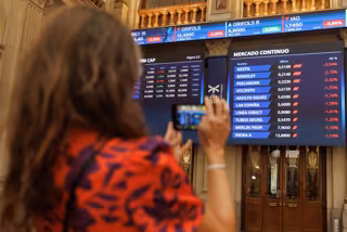 Archivo - Una persona fotografía paneles del Ibex 35 en el Palacio de la Bolsa, a 22 de septiembre de 2023, en Madrid (España). - Eduardo Parra - Europa Press - Archivo