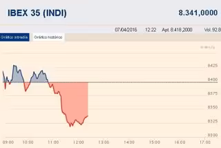 El Ibex 35 se daba la vuelta a media sesión y cambiaba las leves ganancias iniciales por una caída cercana al 1%. El selectivo se alejaba así de la cota de los 8.400 puntos lastrado por los bancos, mientras que la prima de riesgo española escalaba hasta los 145 puntos básicos.